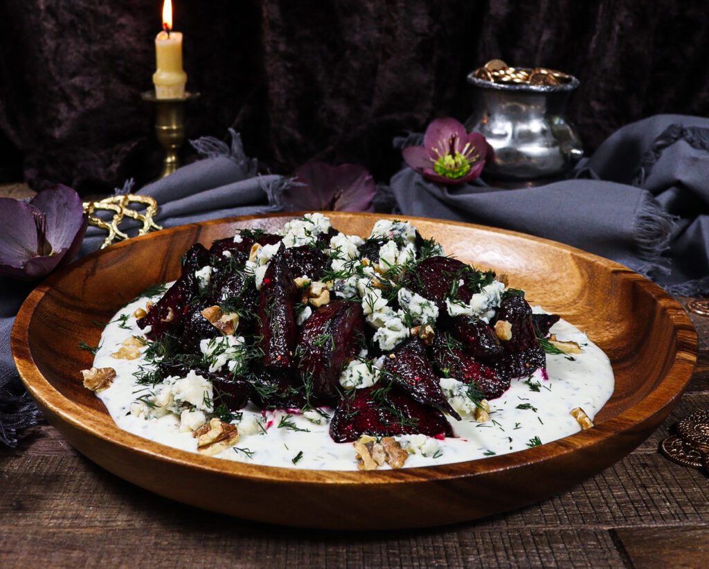 Roasted Beets with Honey Dill Vinaigrette, Blue Cheese, and Walnuts