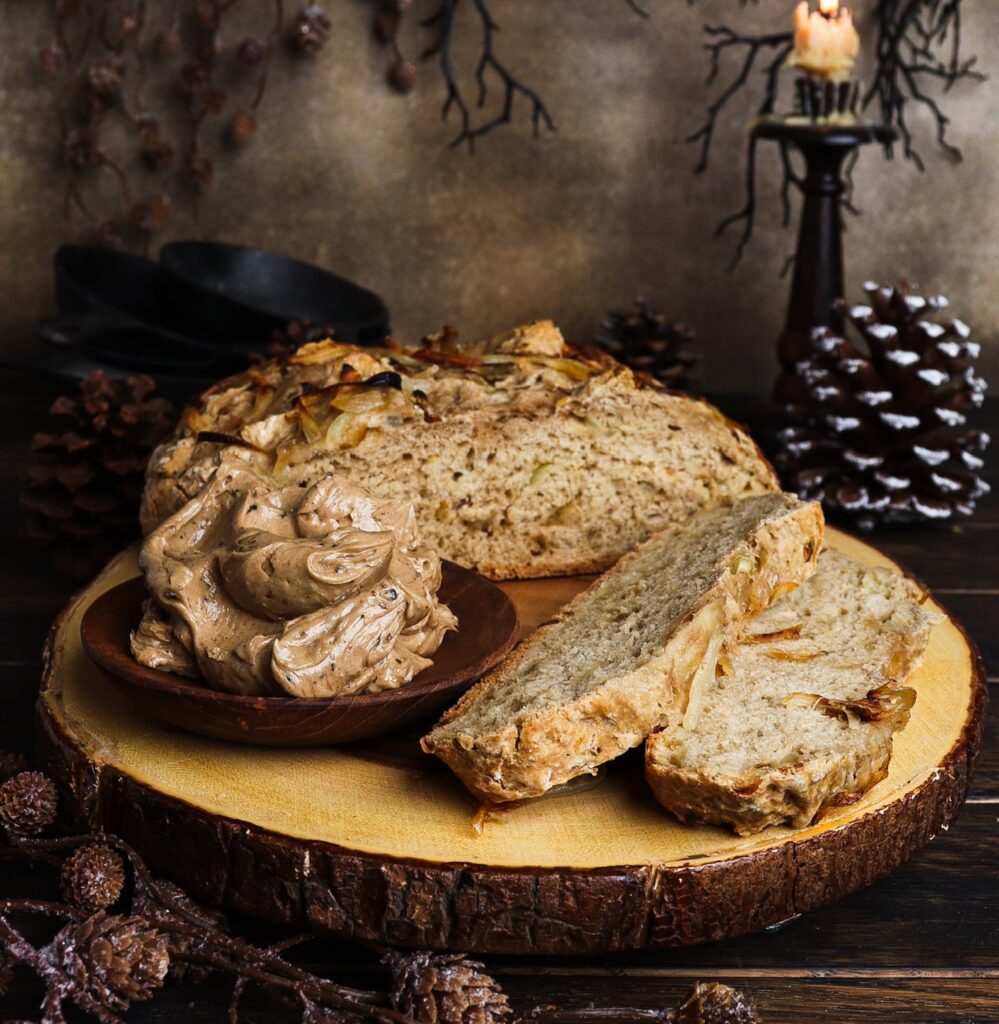 Indulge in the cuisine of Mordor from Tolkien’s Middle Earth with this black beer onion bread slathered with pungent black garlic butter.