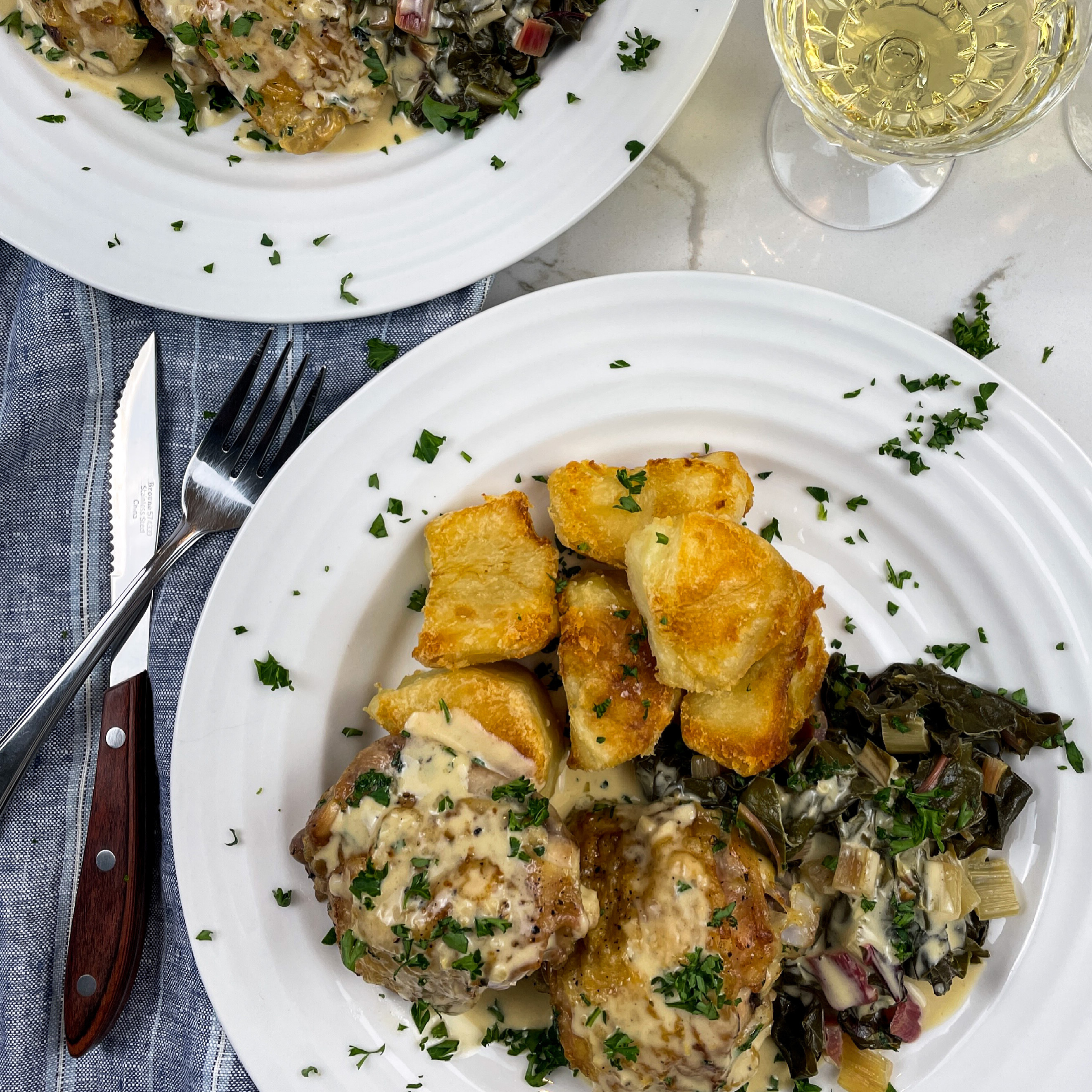 I serve this chicken recipe with a side of my Duck Fat Roast Potatoes – recipe coming soon to my blog!